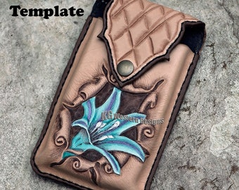 Leather Pattern PDF Smart Phone Holster + Tooling Design. Tooled Leather Phone Case Pattern.